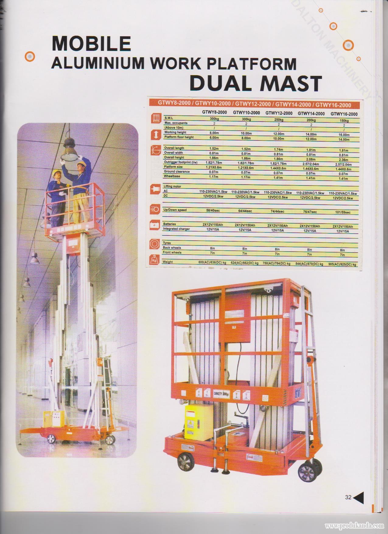 GTWY16-2000 Tinggi Platform max: 16000mm, Kapasitas : 150Kg (max2orang)